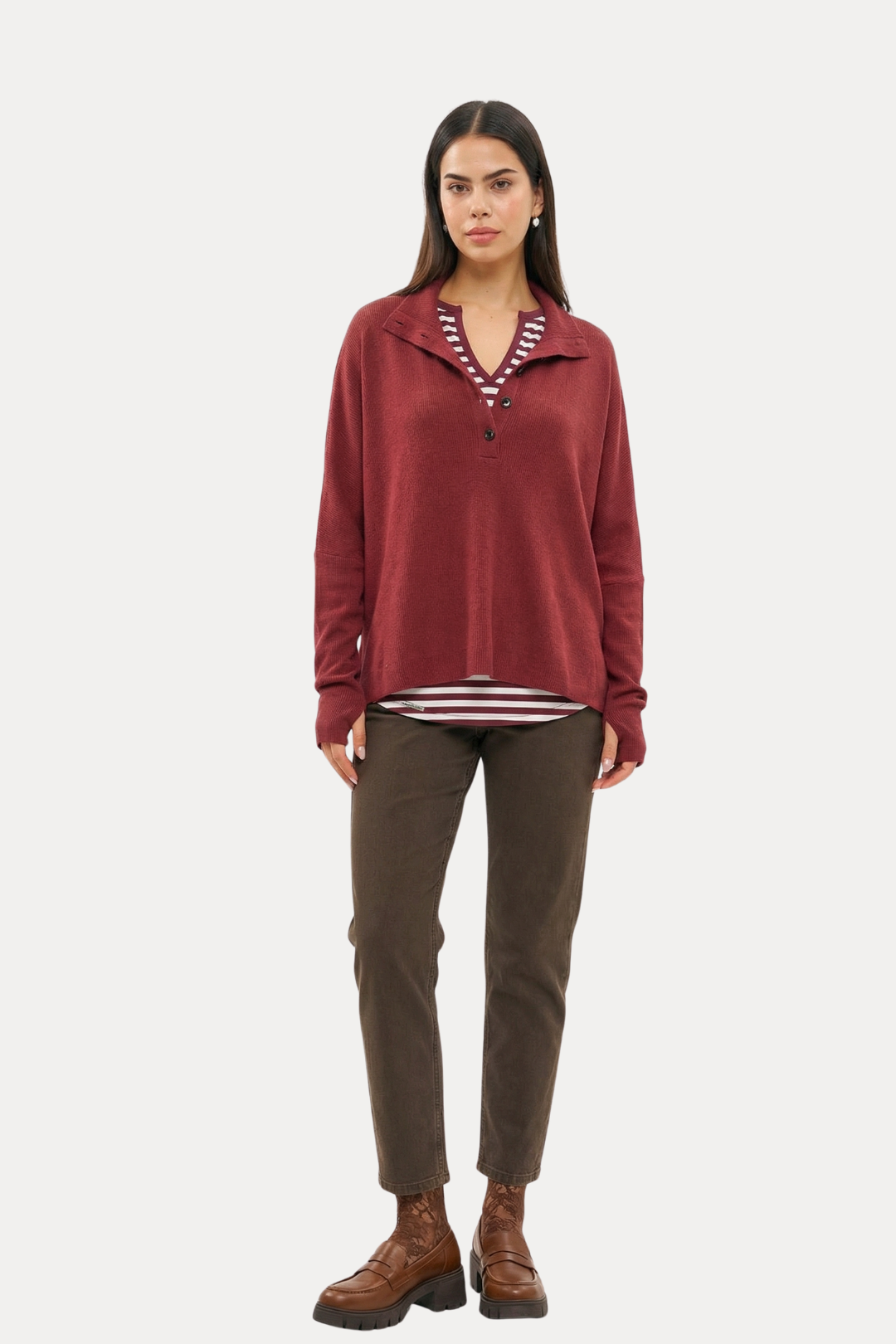 LIHI BURGUNDY AND WHITE STRIPED T-SHIRT