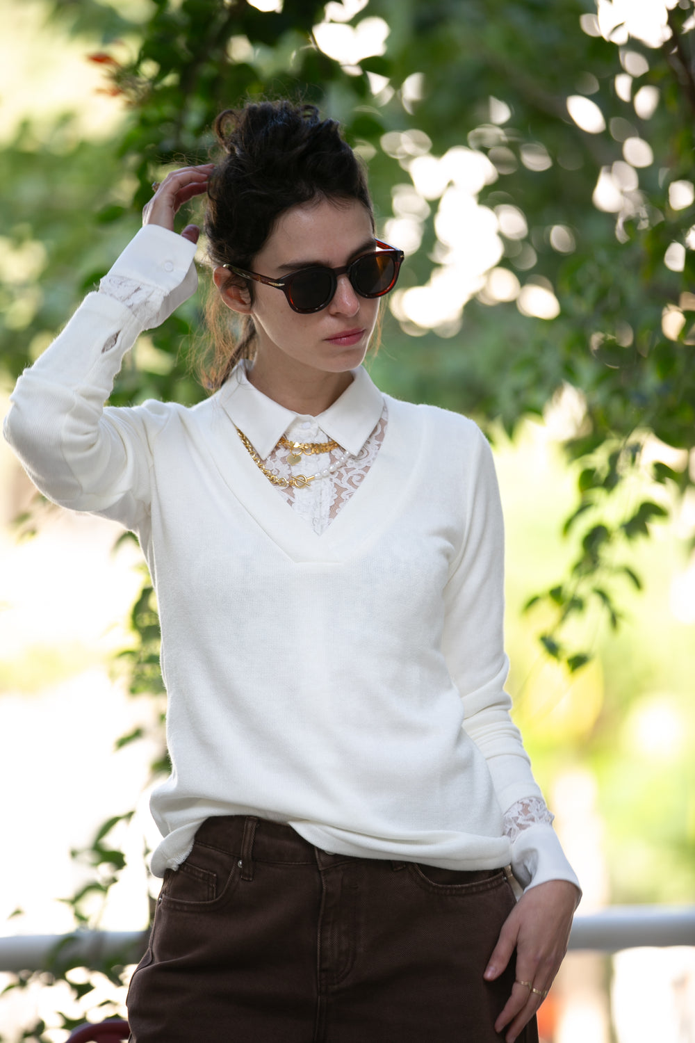 LIHI MOCH AND WHITE STRIPED T-SHIRT