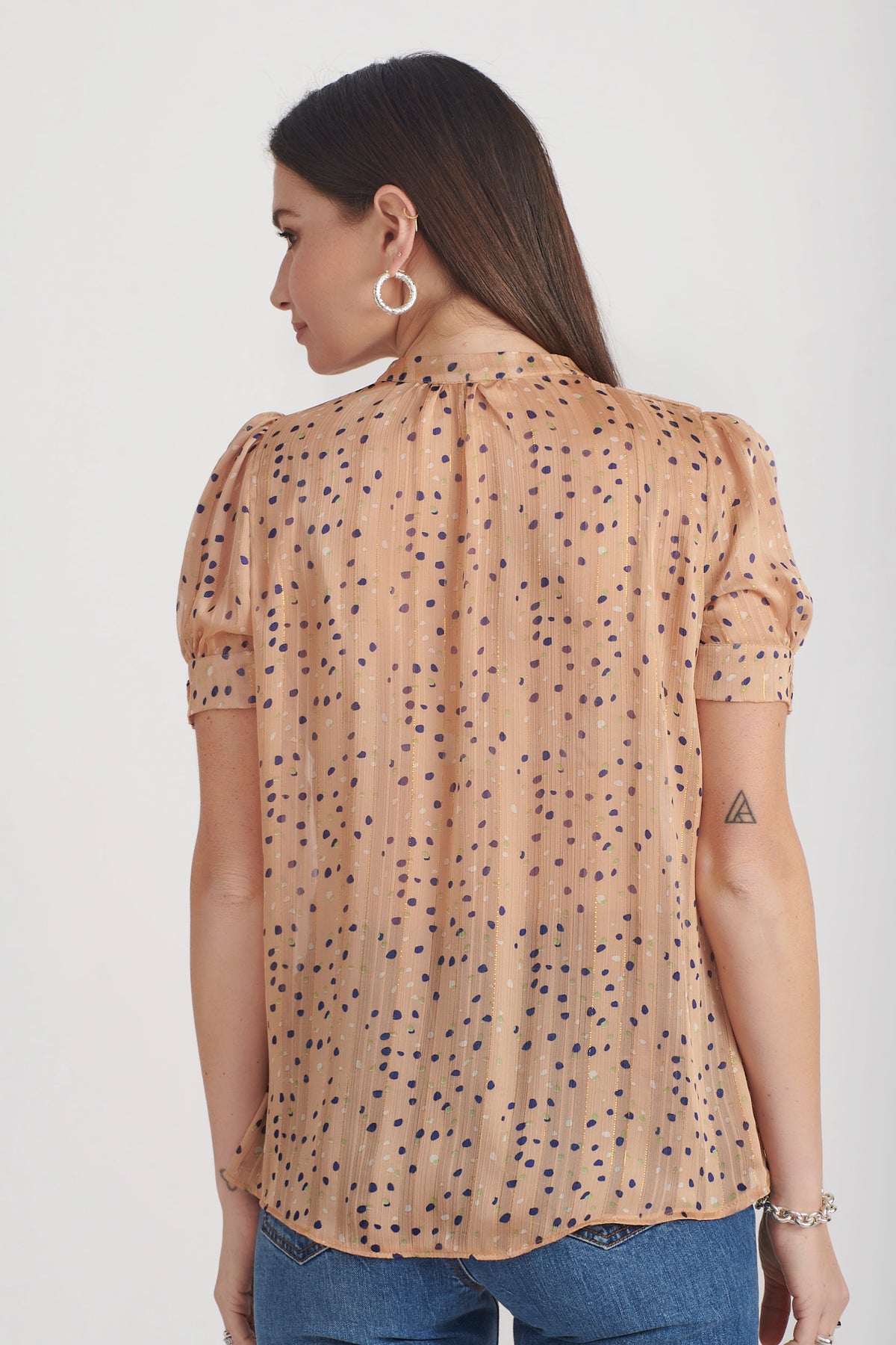 שרוולים קצרים תפוחים עם כיווצים וצווארון סיני