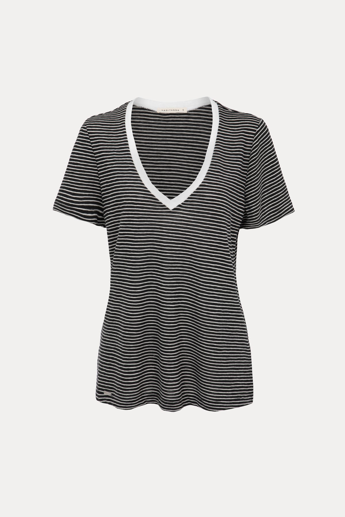 טי שירט פסים מחשוף V שילוב בד חלק הרכב הבד:55% פוליאסטר, 35% ויסקוזה, 10% פשתן