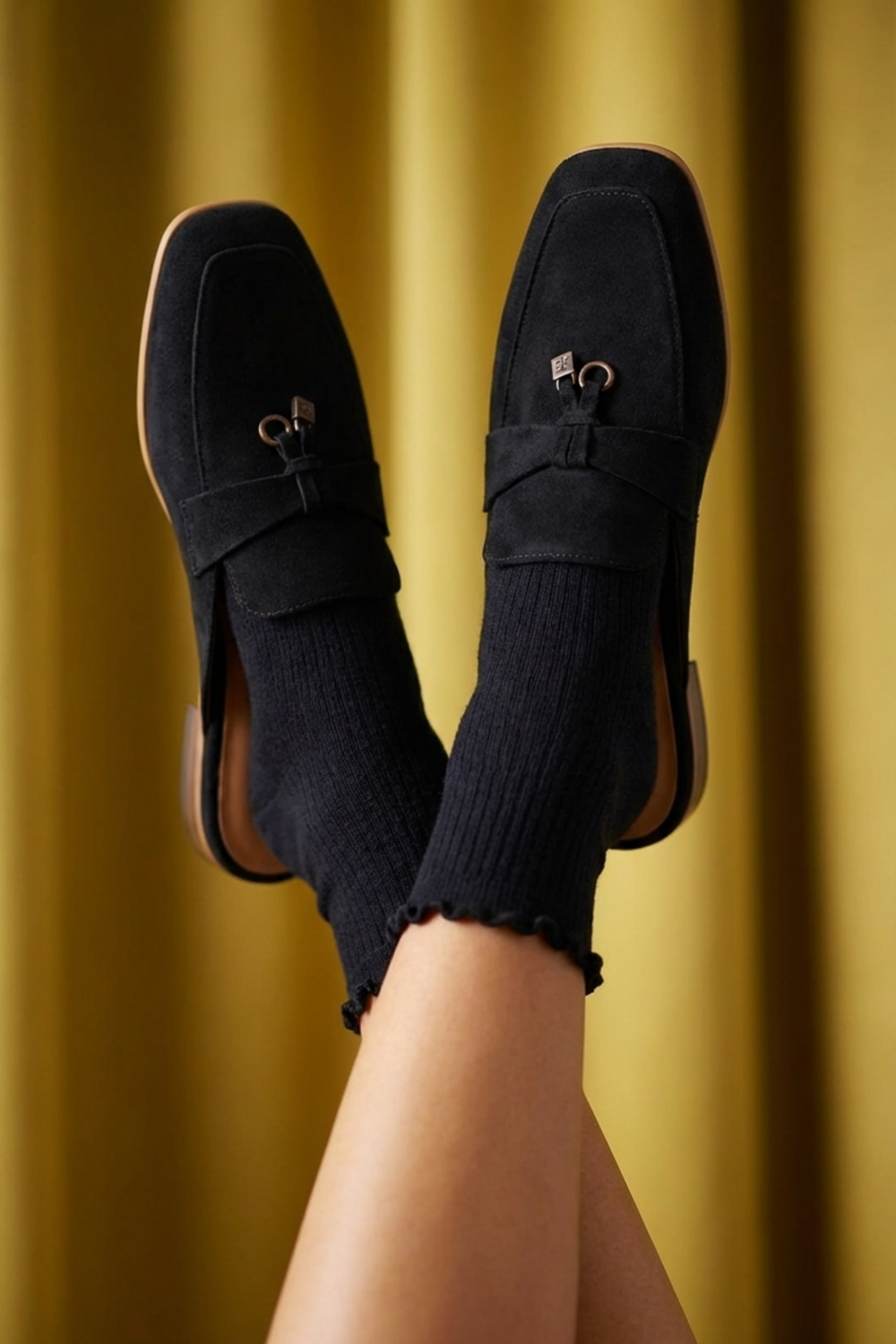 CRYSTAL STRAP BLACK MID HEEL MULES