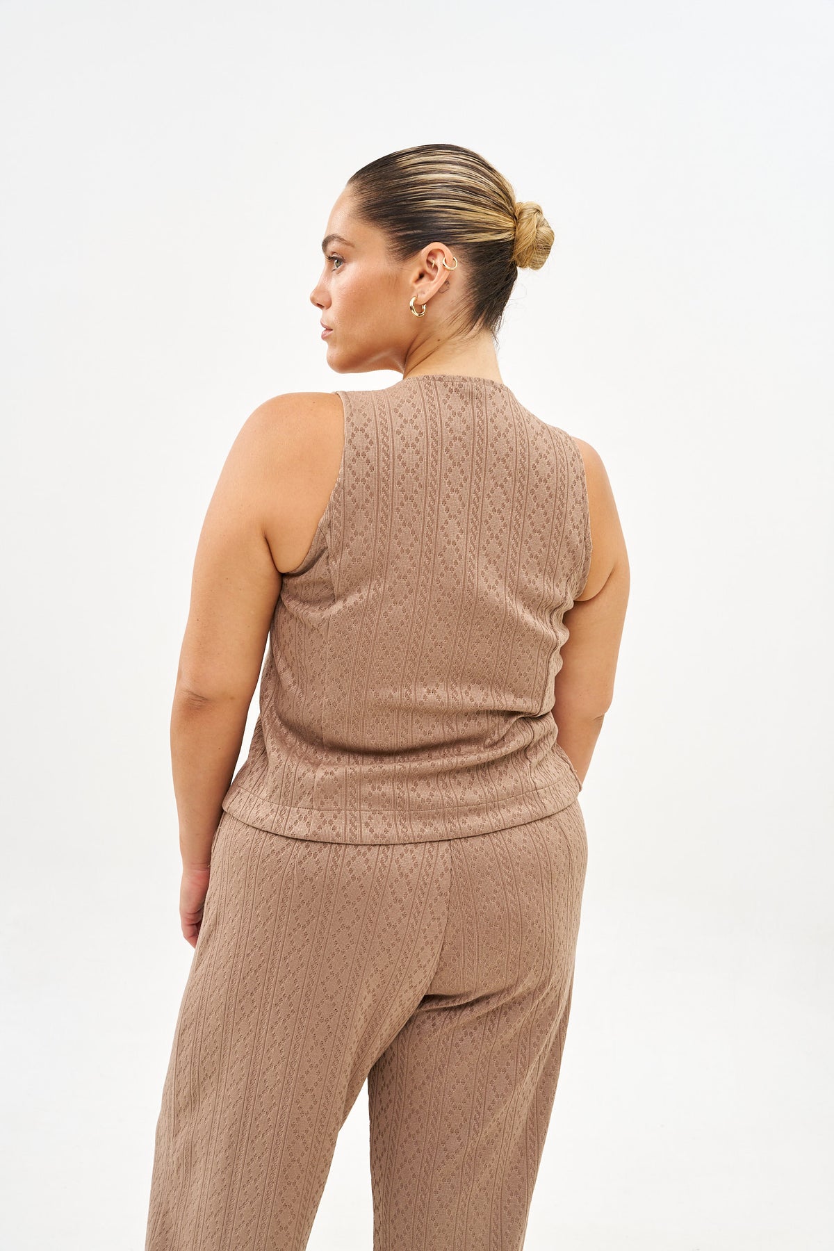 מכנסי סריג ג'אקרד עם גומי במותןבקדמי כיסים אלכסוניים ופנסים