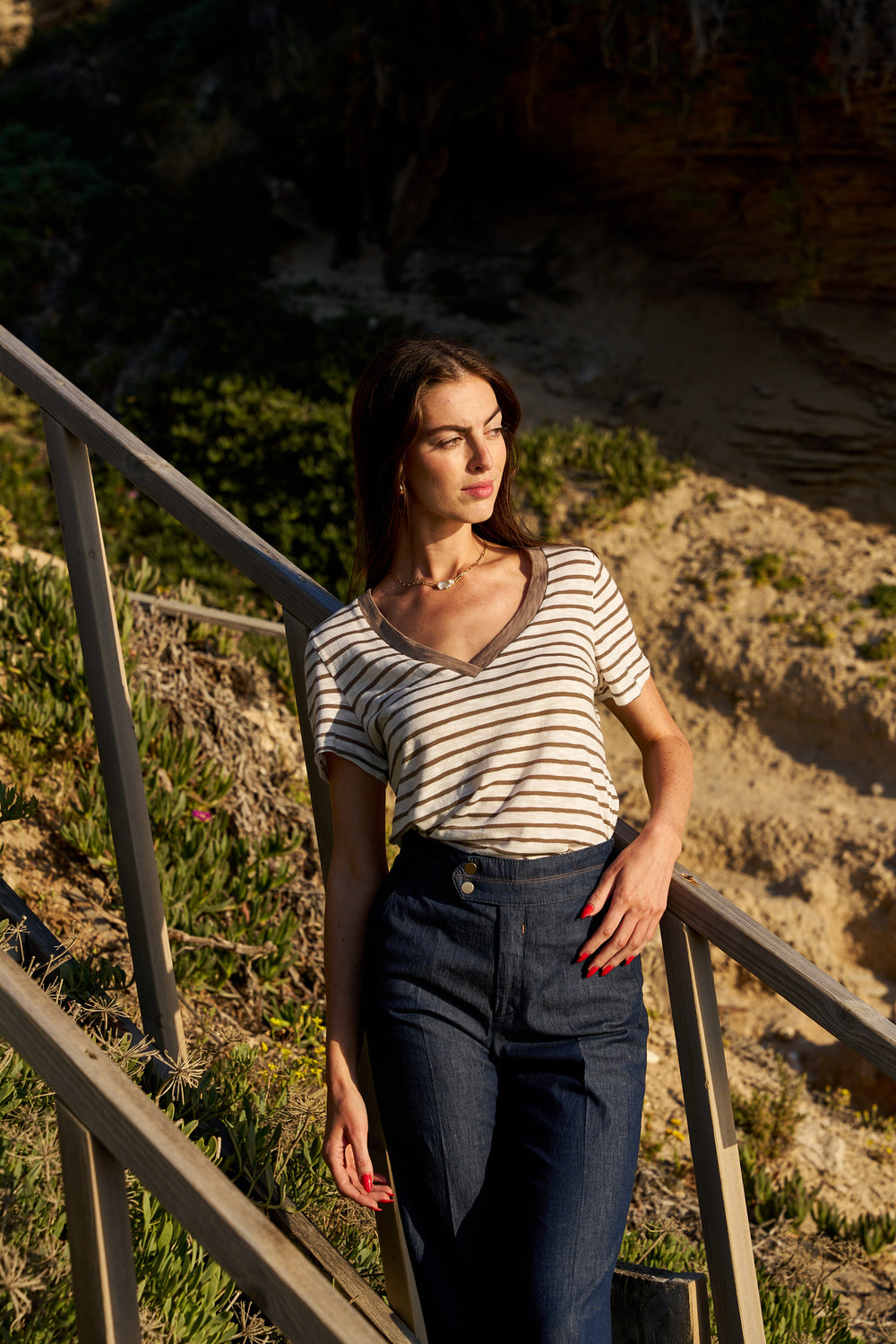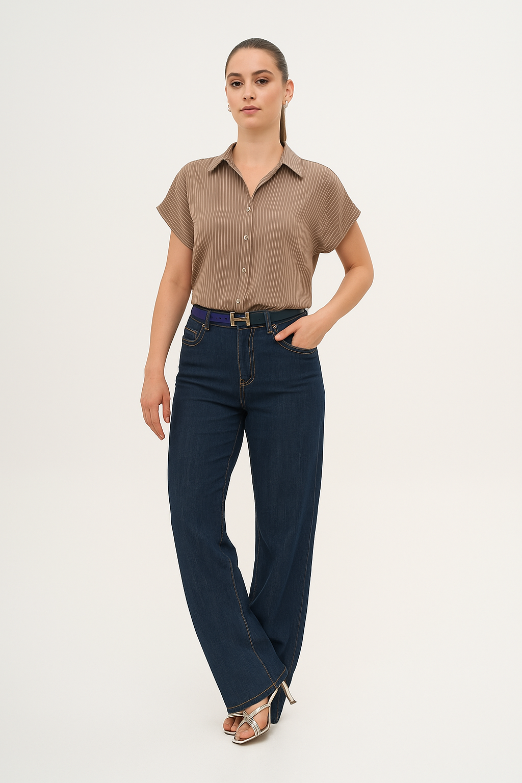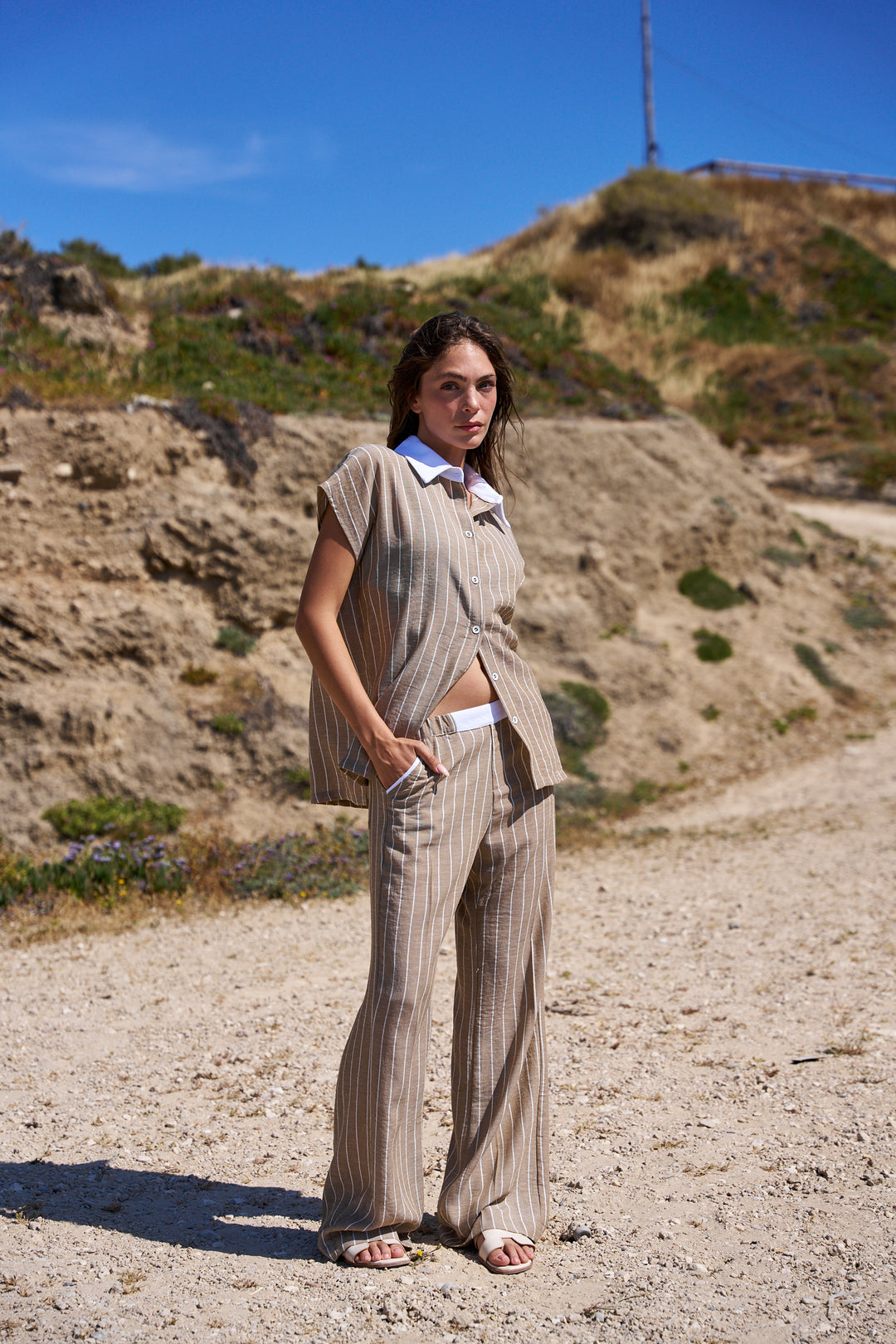 MELISSA CAMEL AND WHITE SHIRT