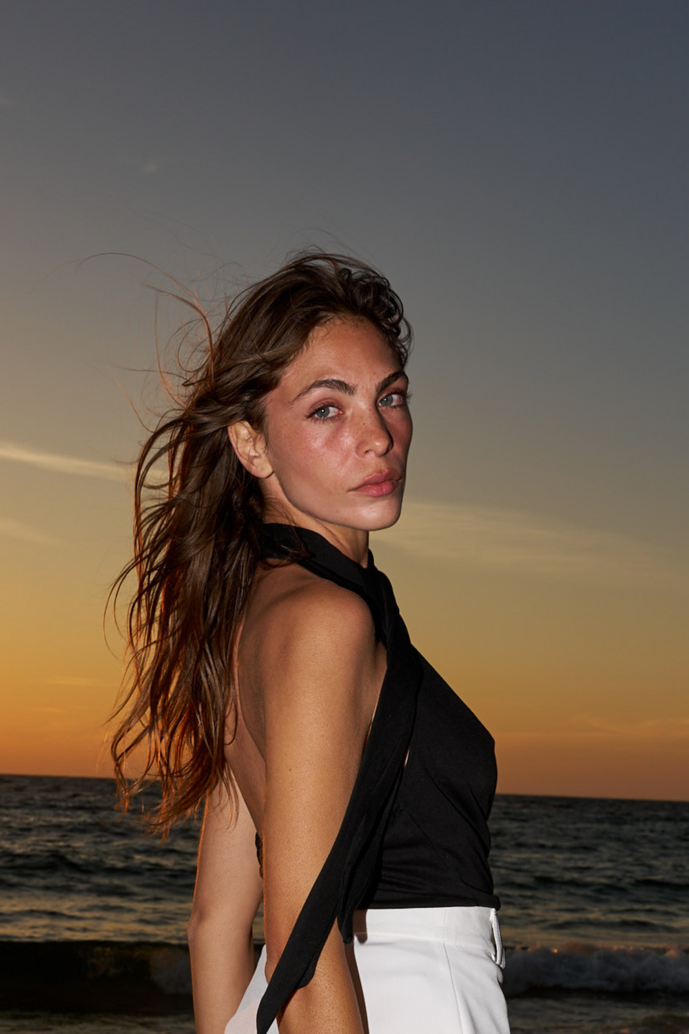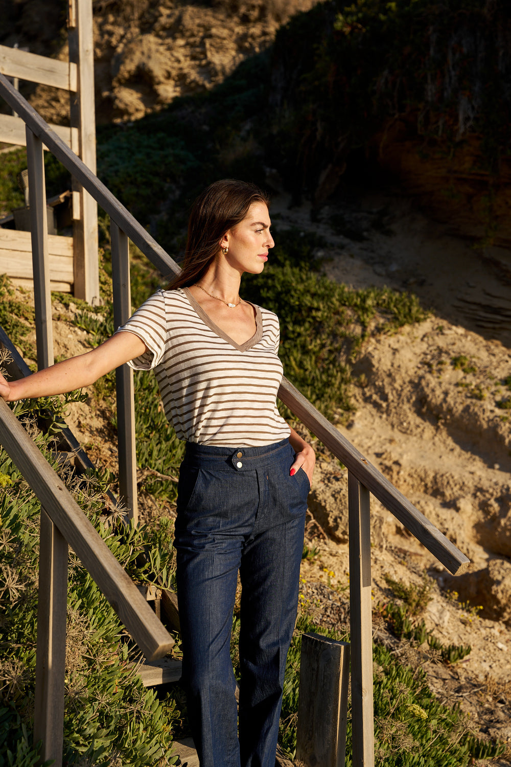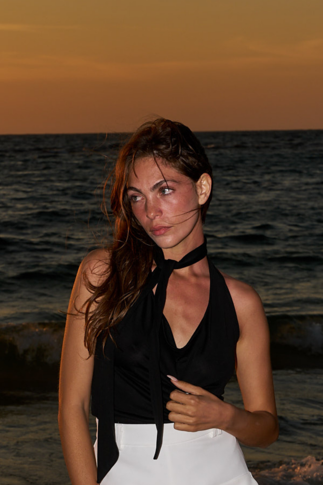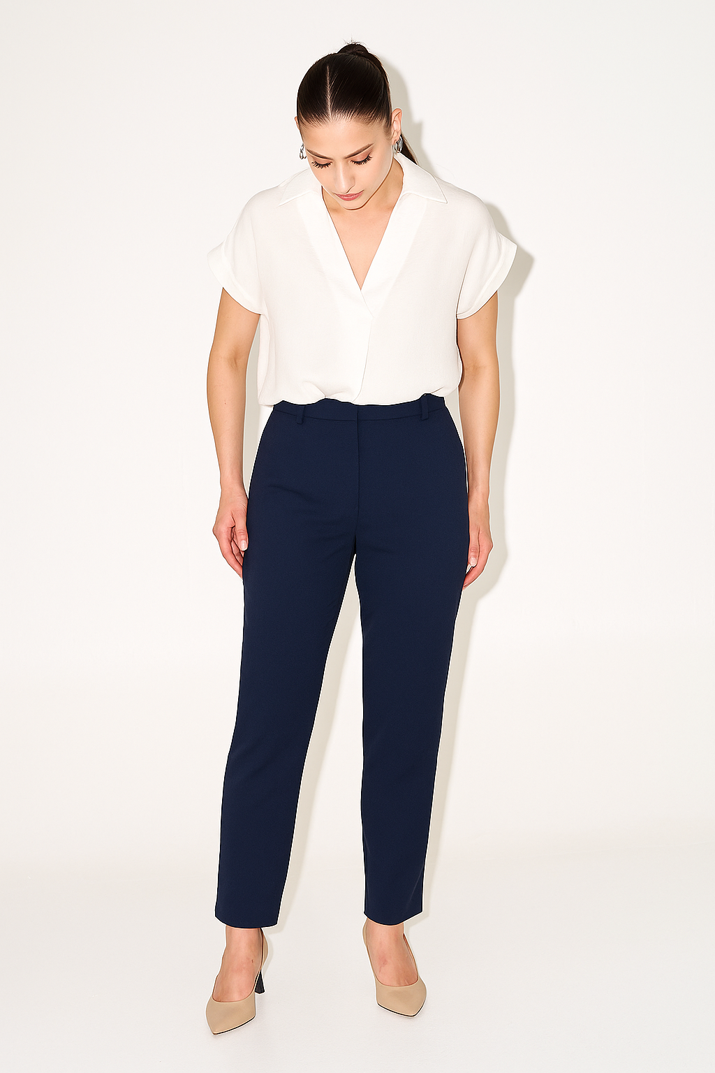 MELISSA CAMEL AND WHITE SHIRT