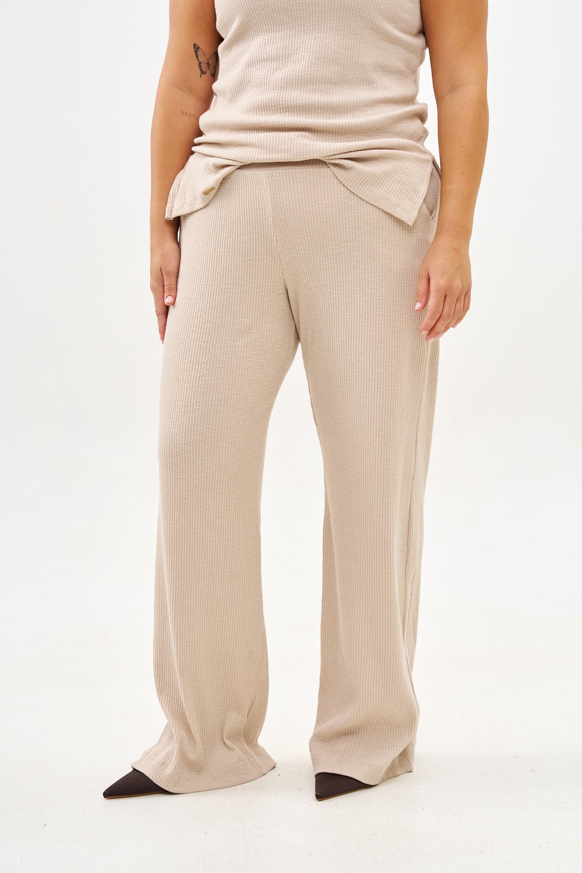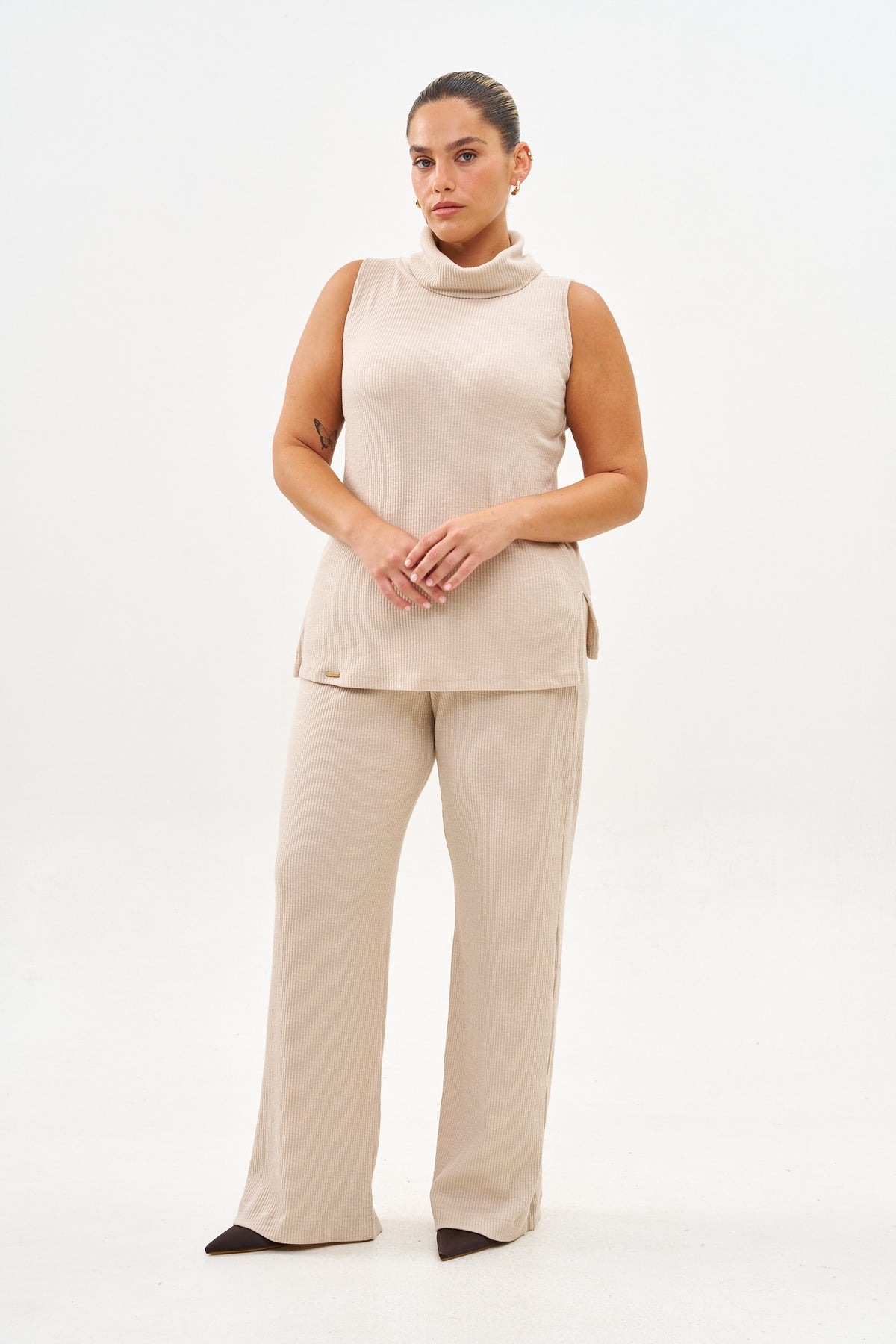 מכנסי סריג רב פסגומי במותן וכיסים אלכסוניים בקדמיהרכב הבד:65% כותנה, 30% פוליאסטר, 5% לייקרה