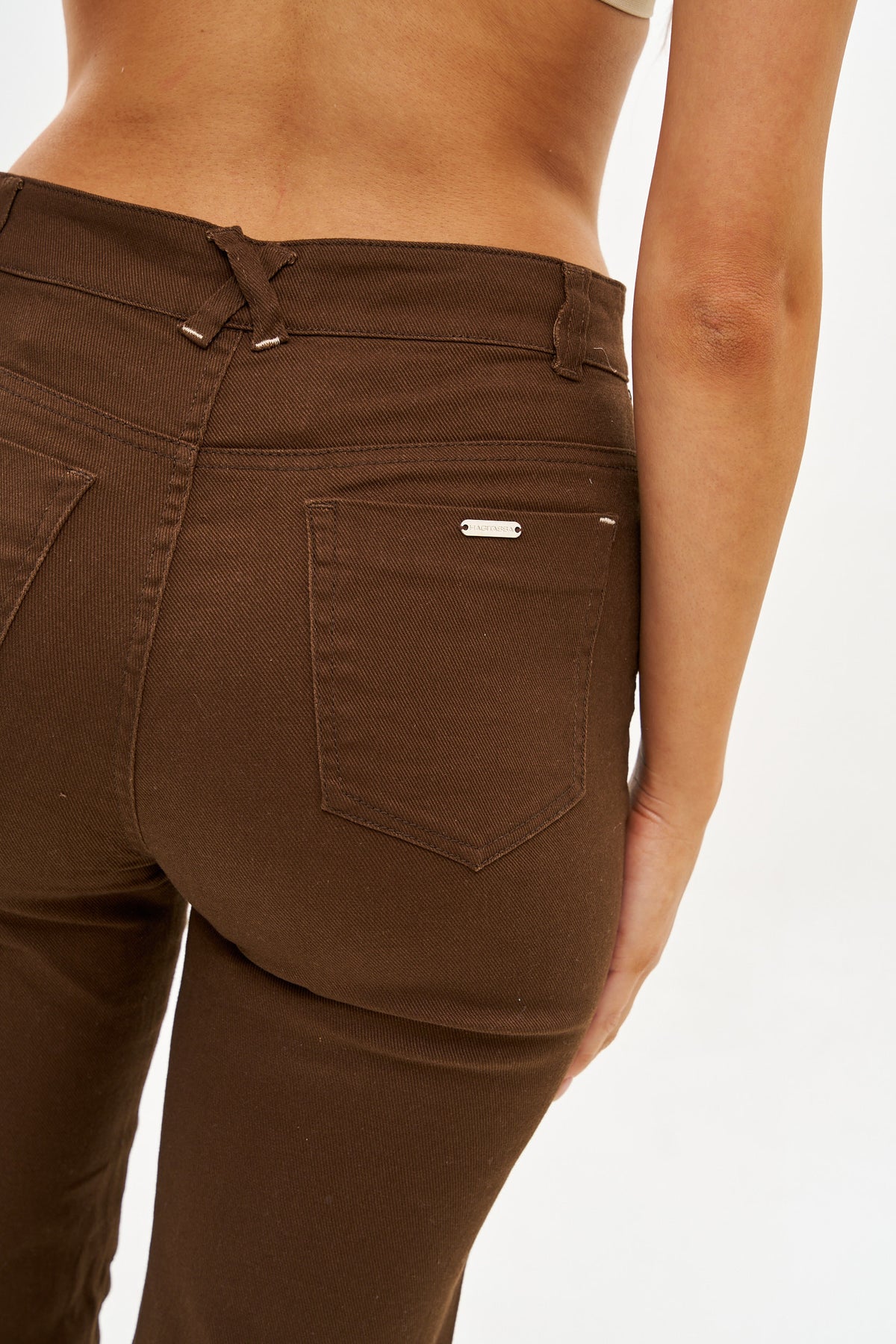 מכנסי דריל בגזרת בויפרנד צרהחגורה ורוכסן אלכסוניים בקדמי
