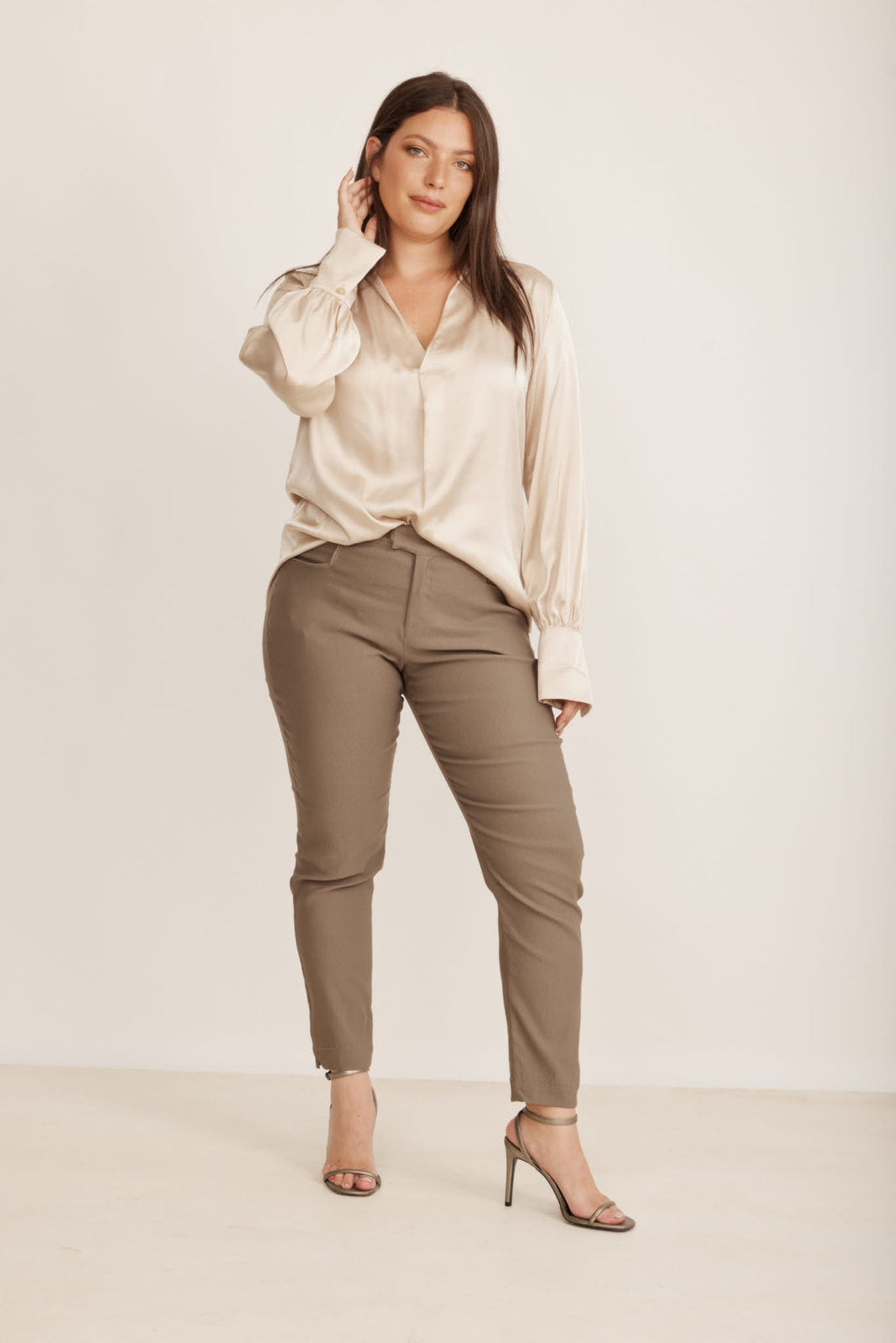 קפל במחשוף וחפתים רחבים עם כפתור מוזהב