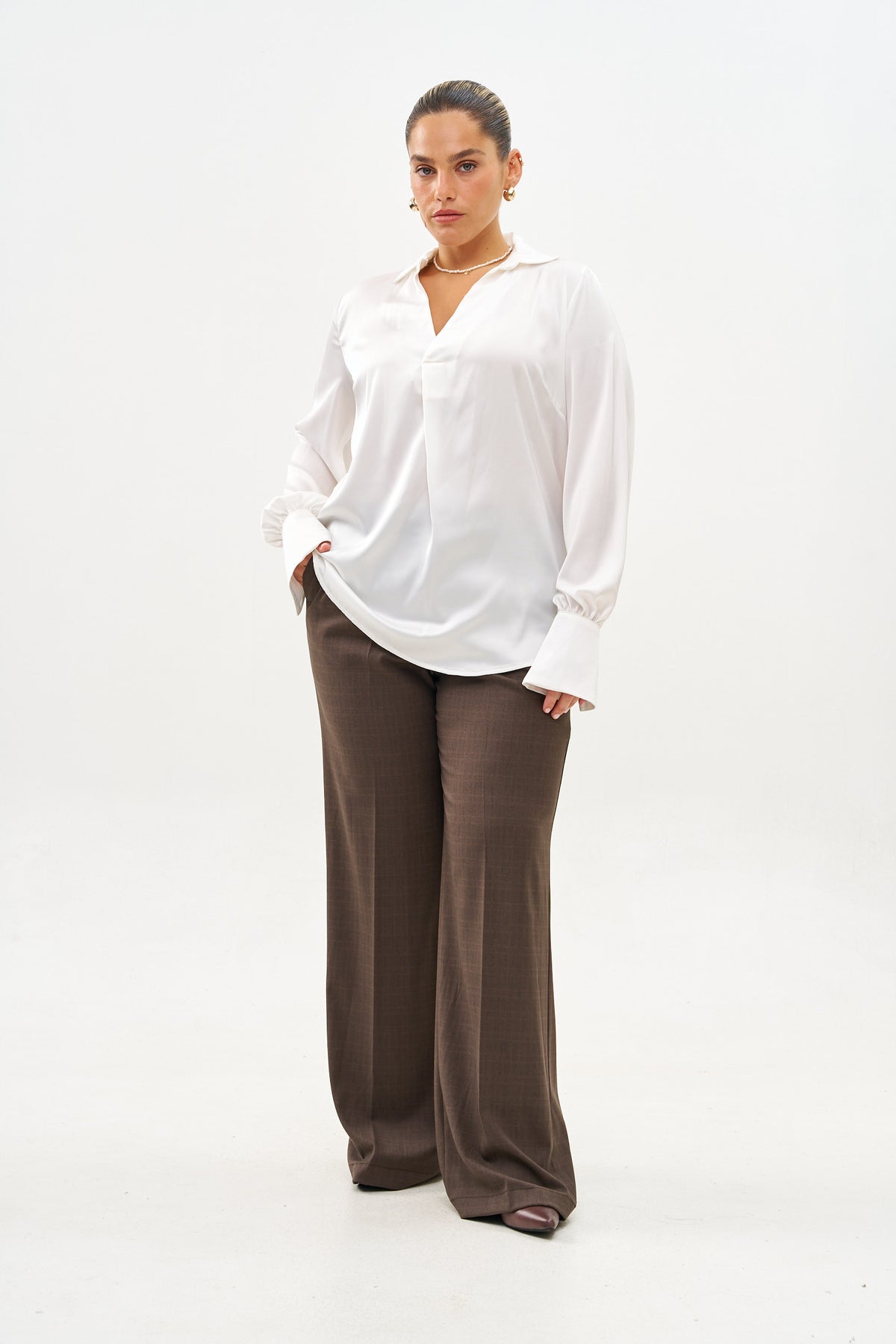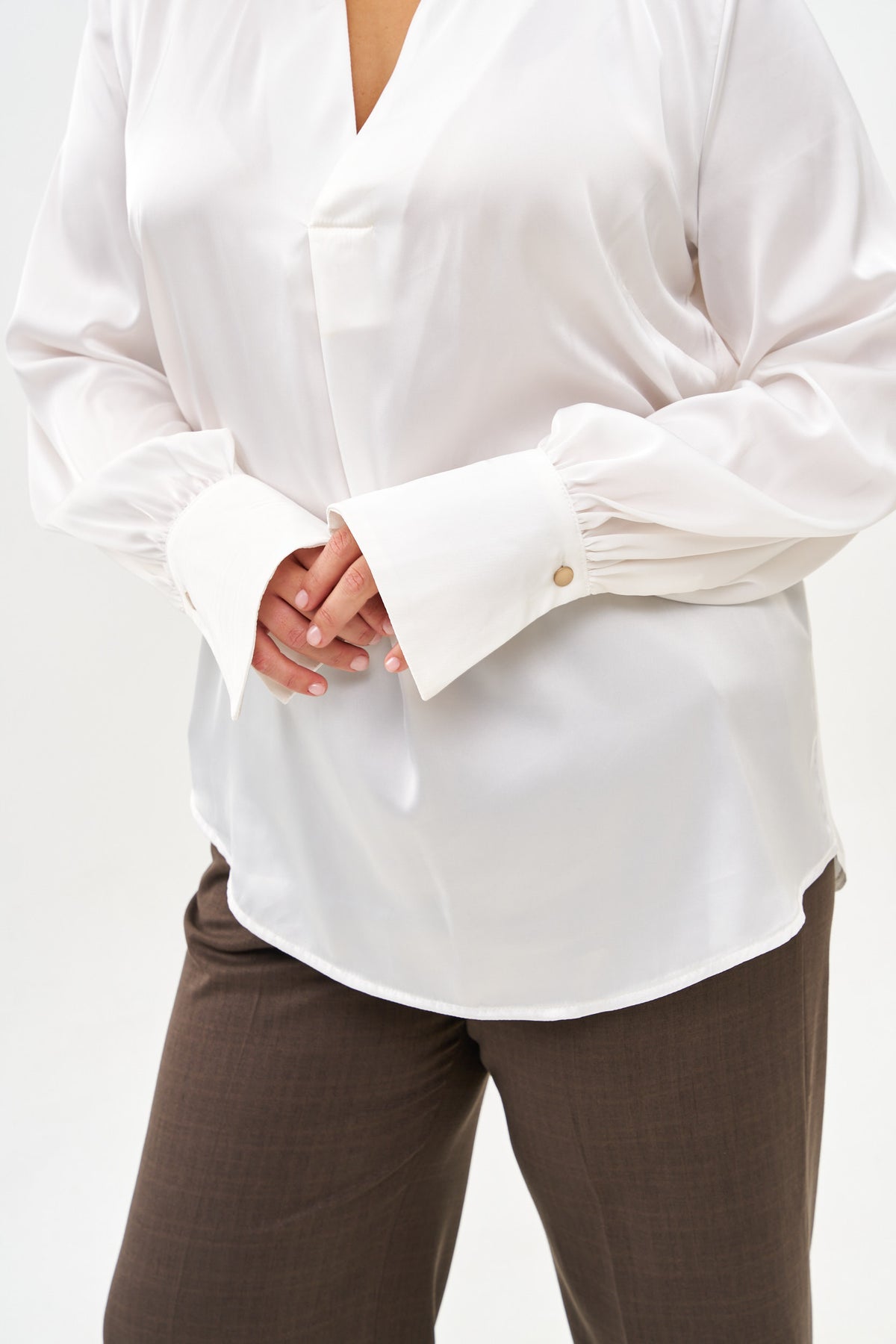 קפל במחשוף וחפתים רחבים עם כפתור מוזהב