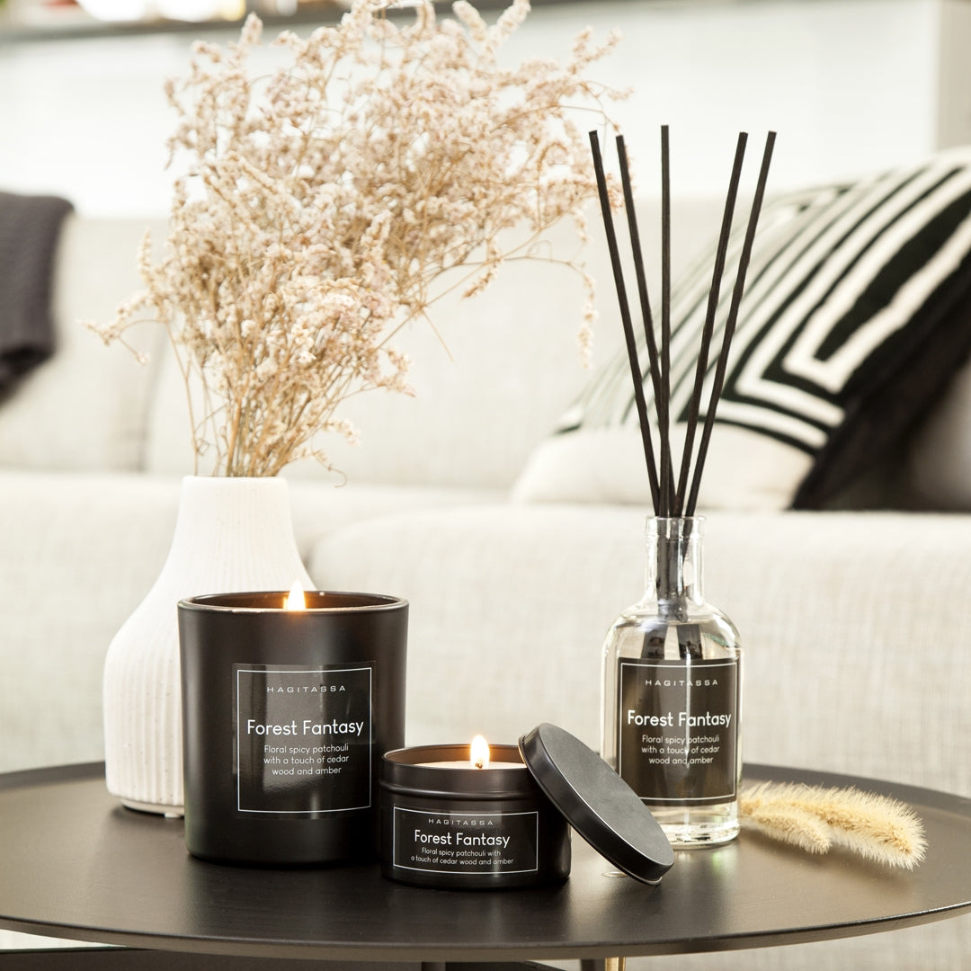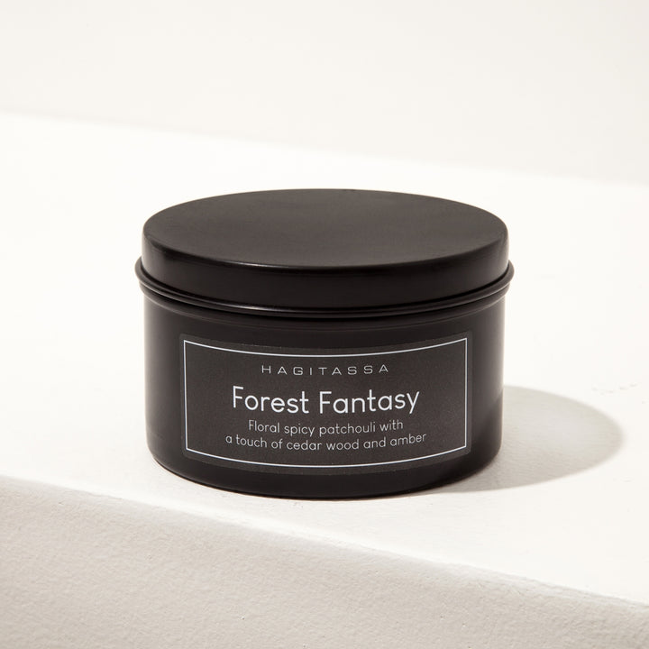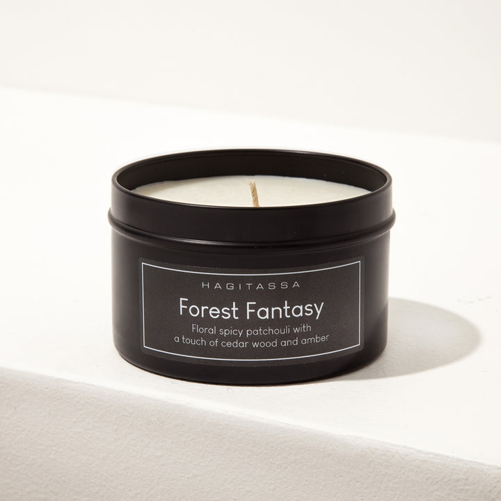 נר מפנק בעיצוב מינימליסטי ומדוייק בריח Forest Fantasy- .ספייסי פצ'ולי עם נגיעה של קליפות עץ ואמבר