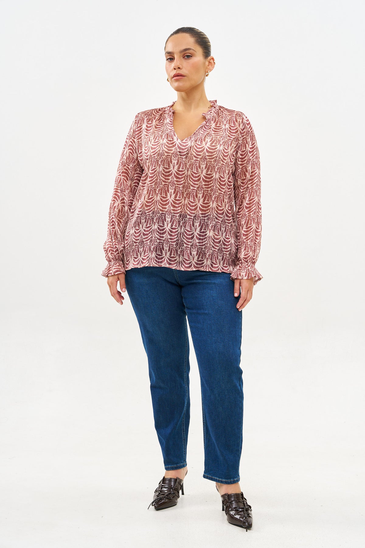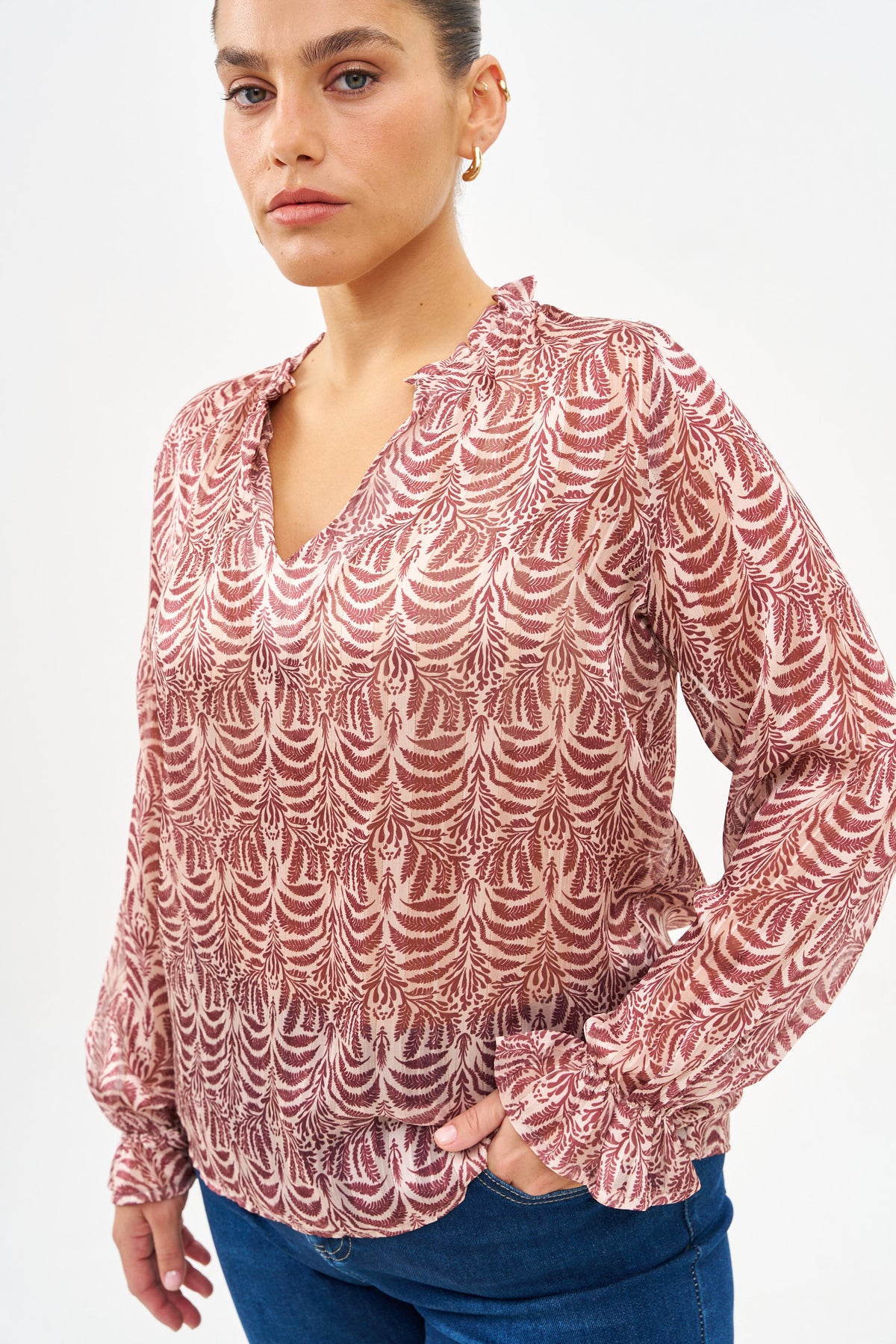 חולצת שיפון מודפס שזור בחוטי זהב עדינים