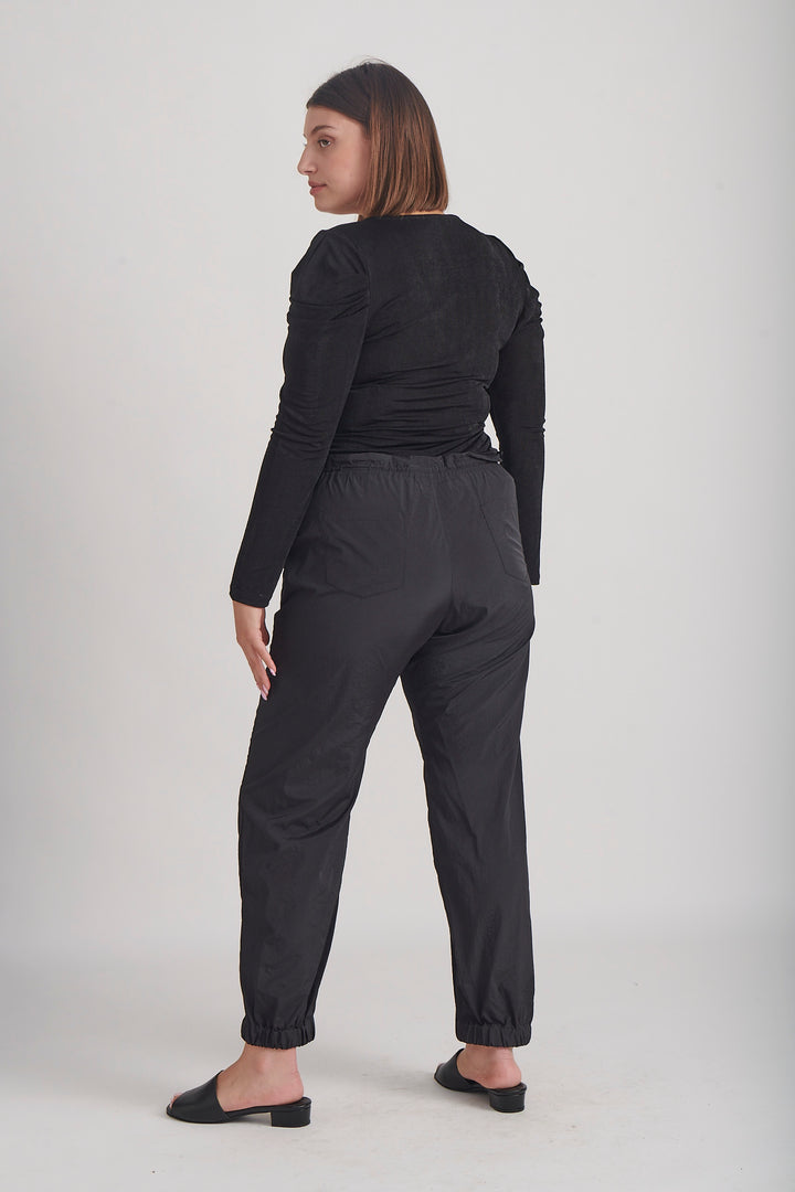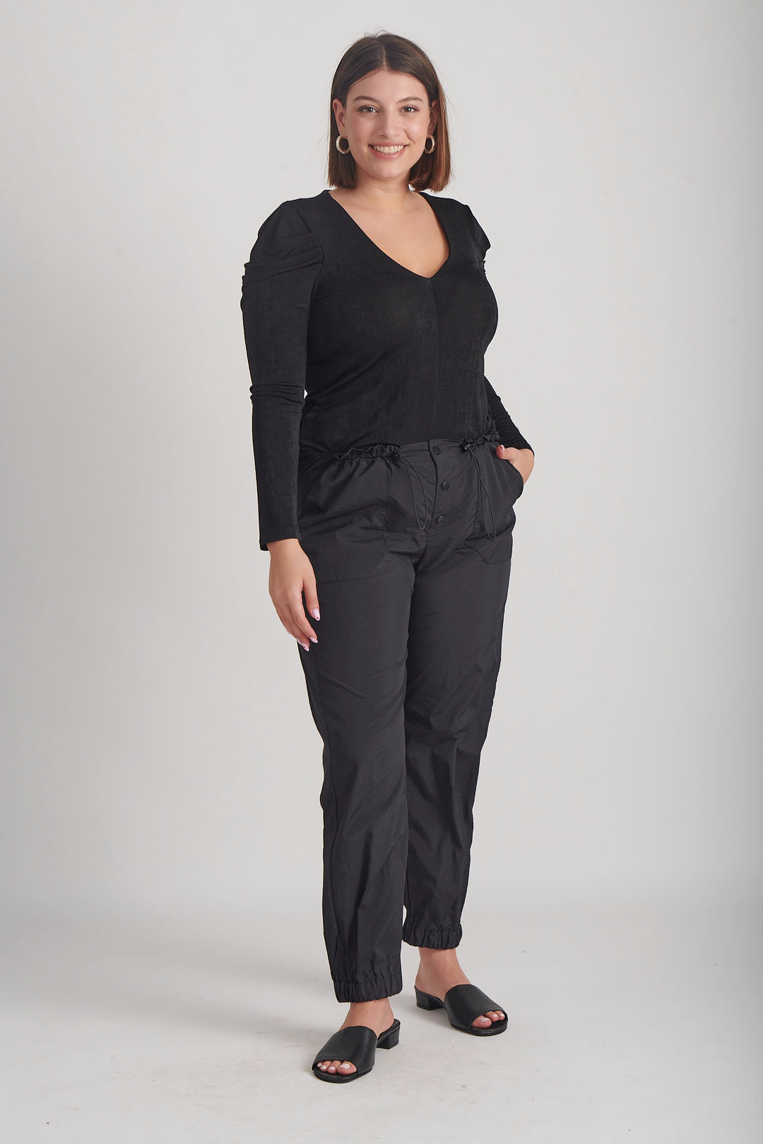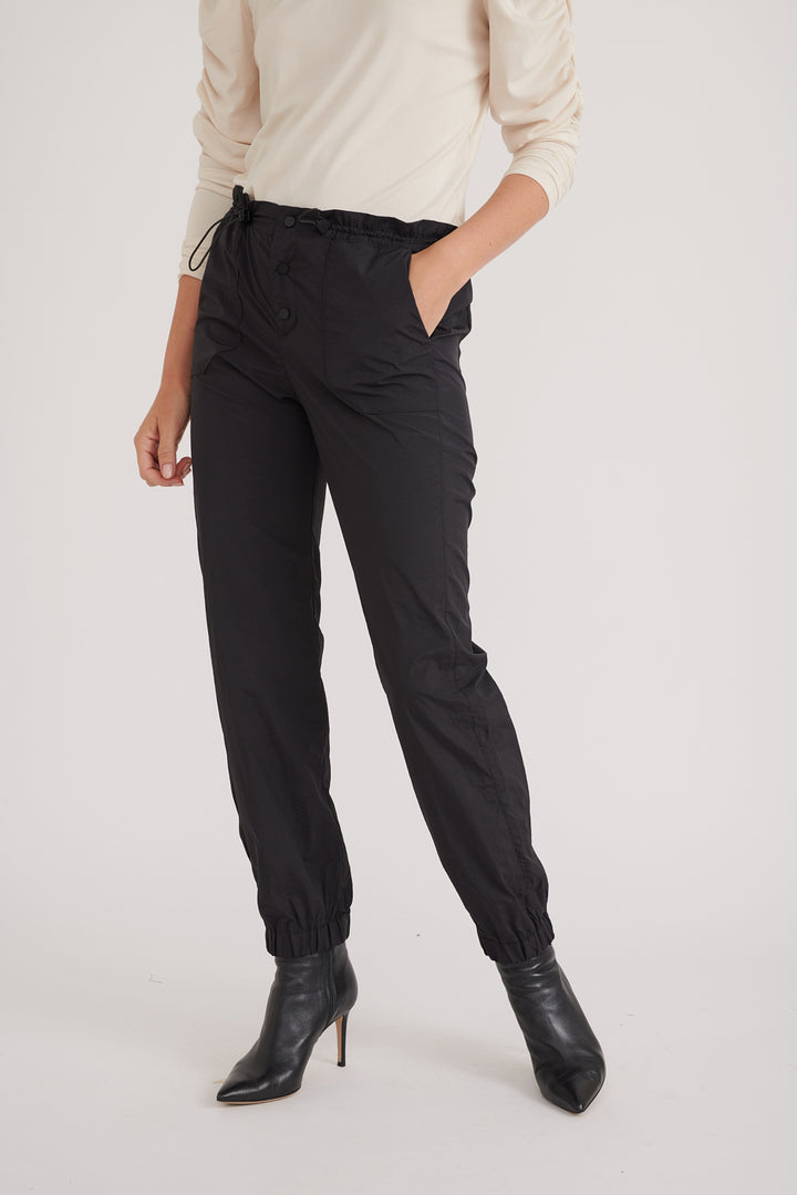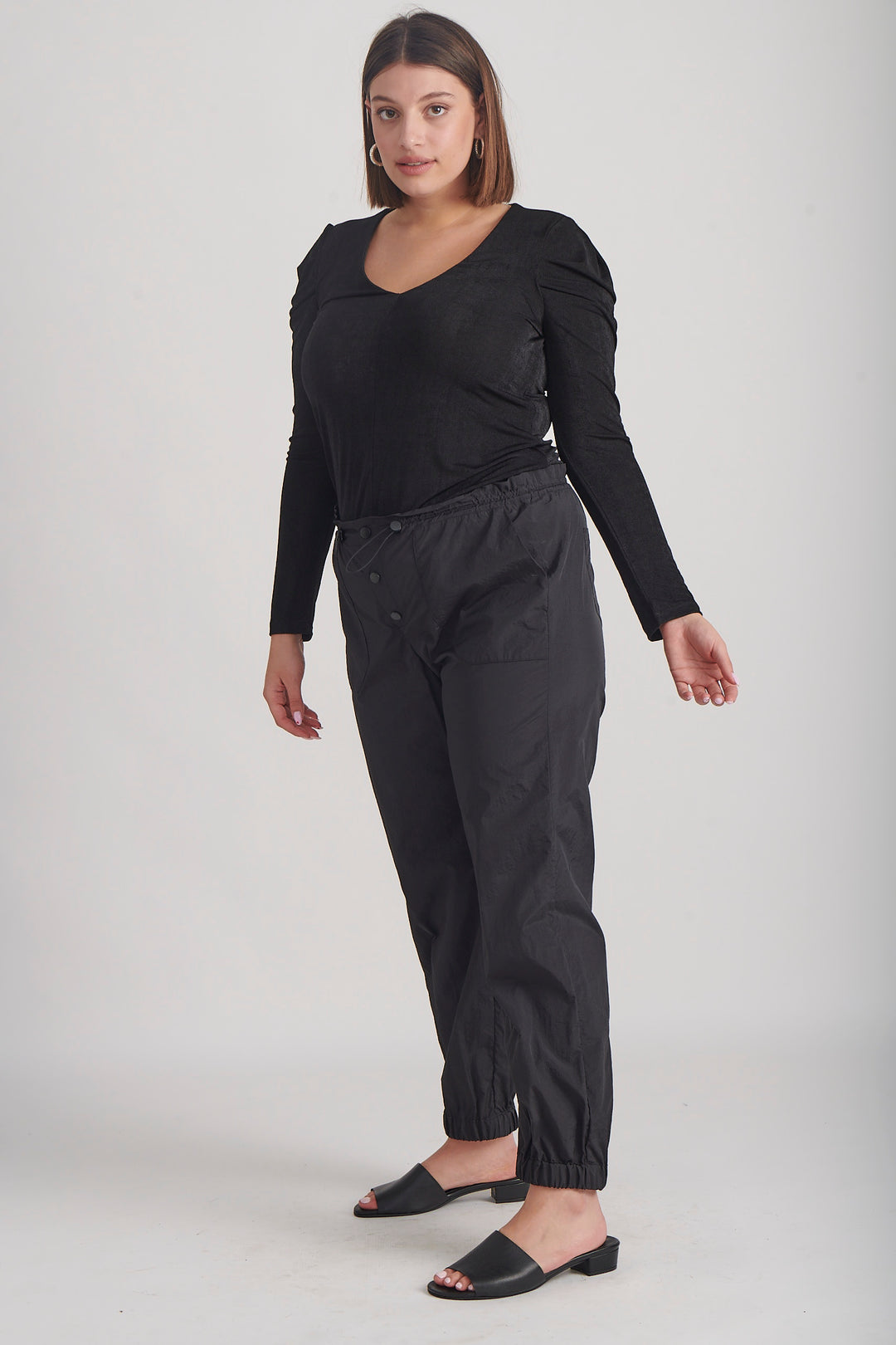 מכנסי פרשוט גומי במותן עם לחצניות וסטופרים. 100% פוליאסטר