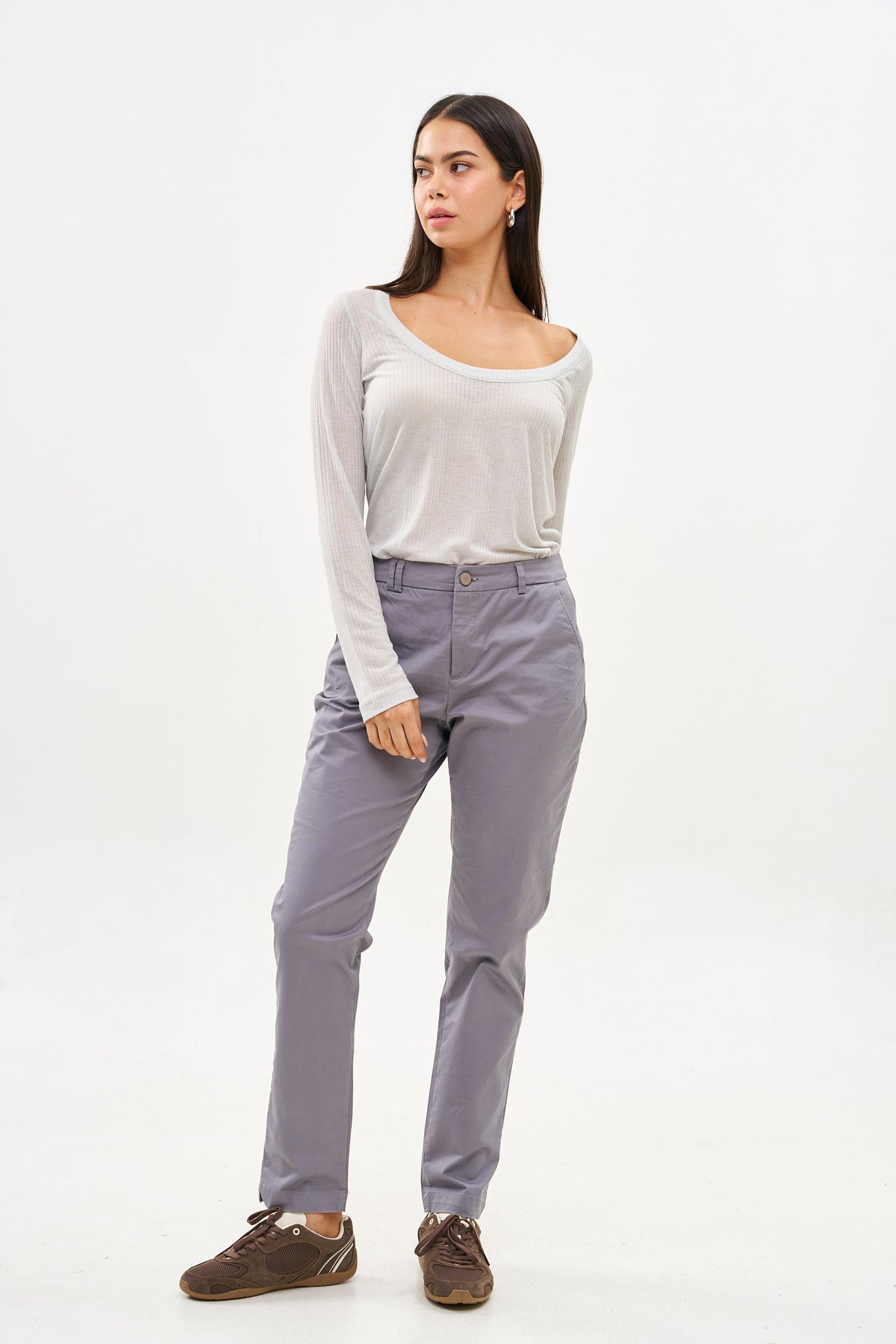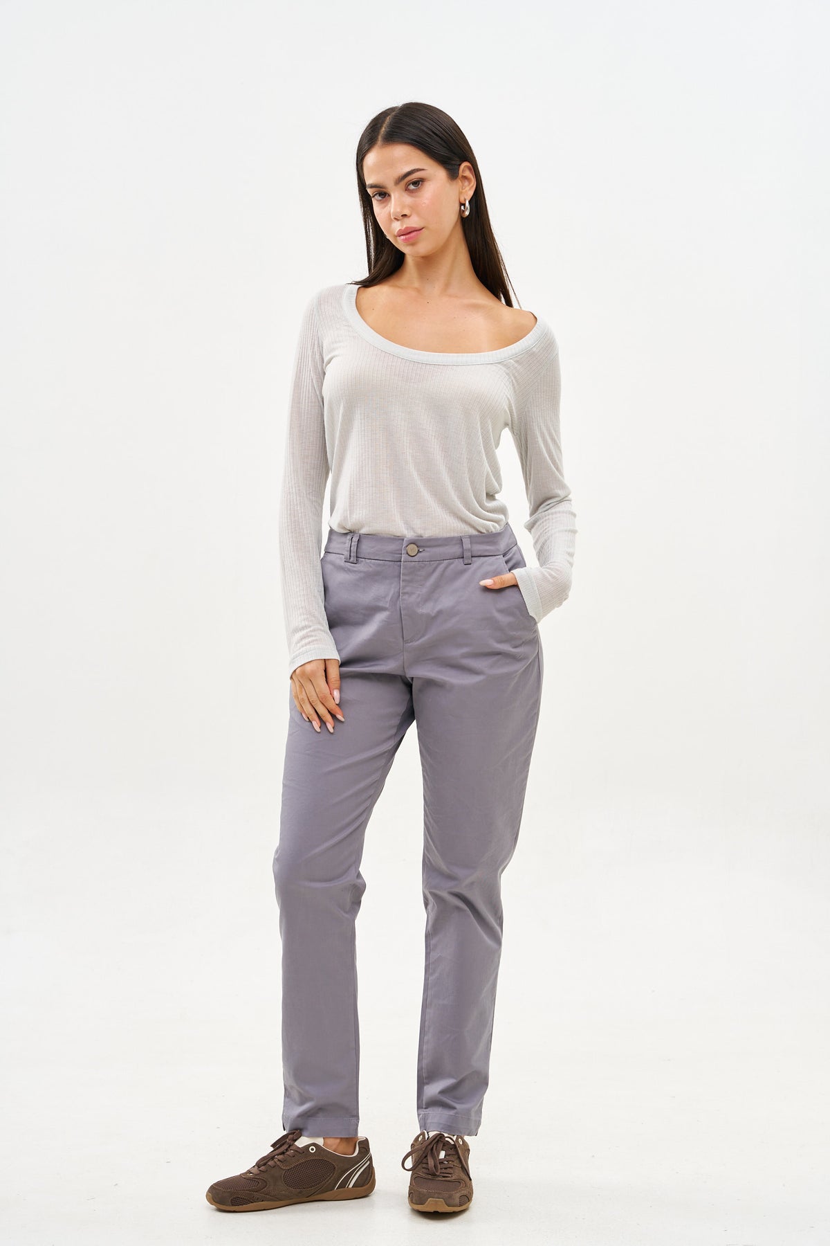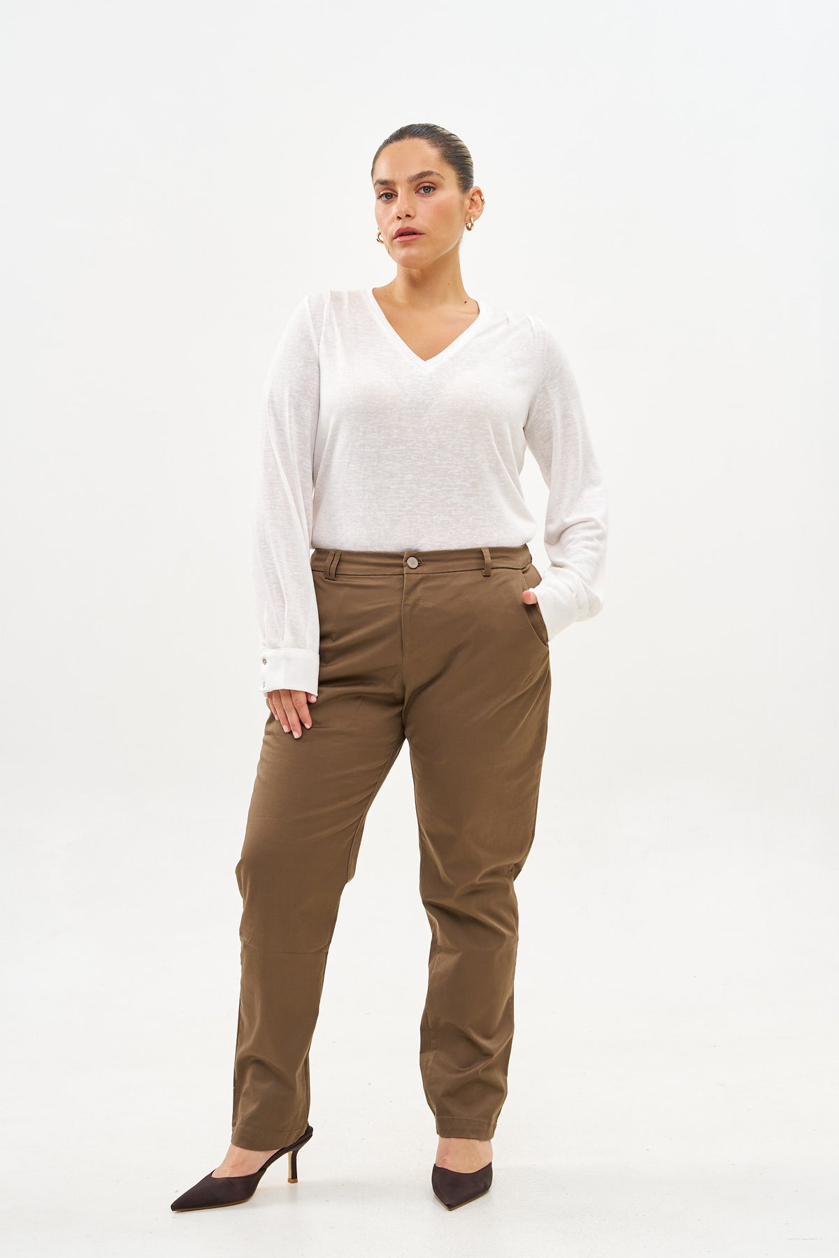 מכנסי דריל בגזרת גזרכיסים אלכסוניים בקדמי וכיס "שעון"דמי כיסי שפה בגב