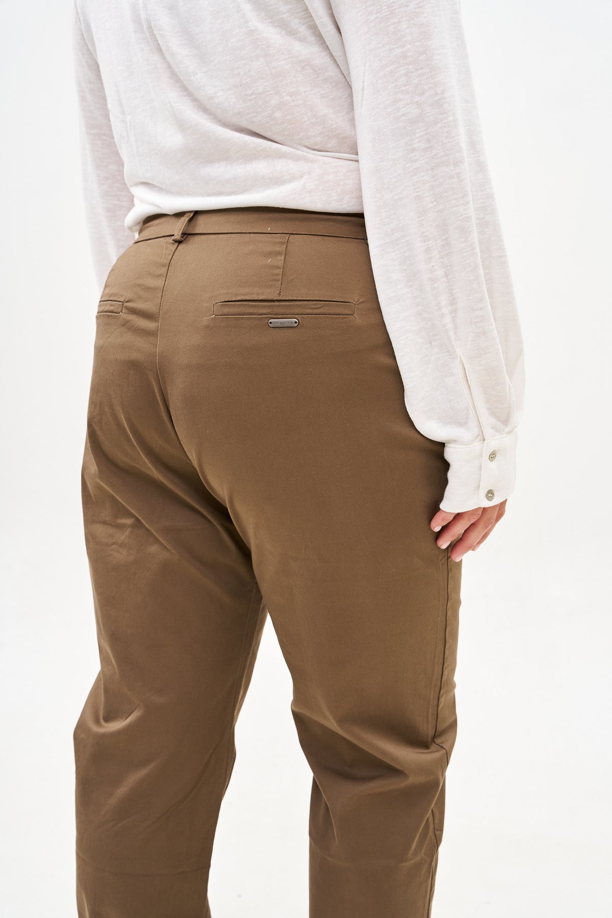 מכנסי דריל בגזרת גזרכיסים אלכסוניים בקדמי וכיס "שעון"דמי כיסי שפה בגב